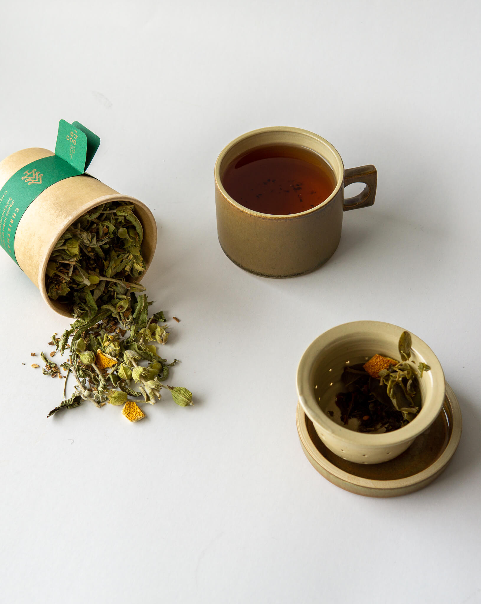Συστατικά: Φλούδα πορτοκαλιού*, Τσάι του βουνού*, Τζίντζερ*, Κανέλα*, Λουίζα*, Φασκόμηλο*, Ύσσωπος*, Άγριο τριαντάφυλλο*, Κάρδαμο*, Γαρύφαλλο*